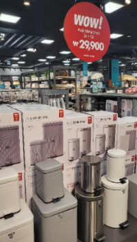 쓰레기통이 무소음 원형페달 32개세트입니다. 작은것과 큰것 두개의 상품(3ℓ, 12ℓ) 으로 29,900원. 괜찮아보였습니다. 물론 더 큰 사이즈도 있습니다. 3ℓ,20ℓ로 39,900원으로 사이즈가 큰만큼 가격도 올라갑니다. 테이블보도 특가 상품이라 괜찮아 보입니다. 얼마전에 인터넷으로 구입했었기에 나중에 필요할때 와 봐야겠습니다. 시원한 바다의 풍경, 멀리서 볼때 액자인줄 알았는데 접이식 테이블이였습니다. 평소엔 액자처럼 사용하다가 필요할땐 펴서 테이블로 사용하면 좋을것 같습니다. 여름인만큼 각종 선풍기들도 많이 진열되어 있습니다. 보면 볼수록 사고 싶은것들이 많아졌습니다.
