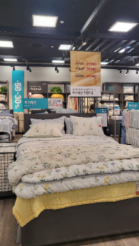 여름철이 다가오니 침구류도 얇아졌습니다. 시원하게 덮을수 있는 다양한 이불들이 진열되어 있습니다. 배개솜도 다양했습니다. 구경하다보면 살것이 너무 많습니다. 계절이 바뀔때마다 필요한 용품들도 달라지고 원하는 스타일도 달라지다 보니 쓰임새에 따라 침구류도 추가 구입하게 됩니다.